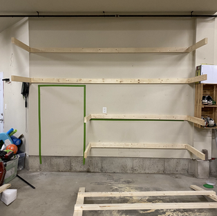 The logical place was to the garage, but before we could move them, we needed a way to organize them. While surfing on Instagram for inspiration, I came across a picture of wall mounted garage storage shelves by @anawhitediy. She also had a detailed tutorial on her website on how to build it which was super handy. I used her blog as a starting point and made some changes to improve upon the design since I would be storing heavier bins on it. On to the build, here's how I built these wall mounted garage storage shelves: